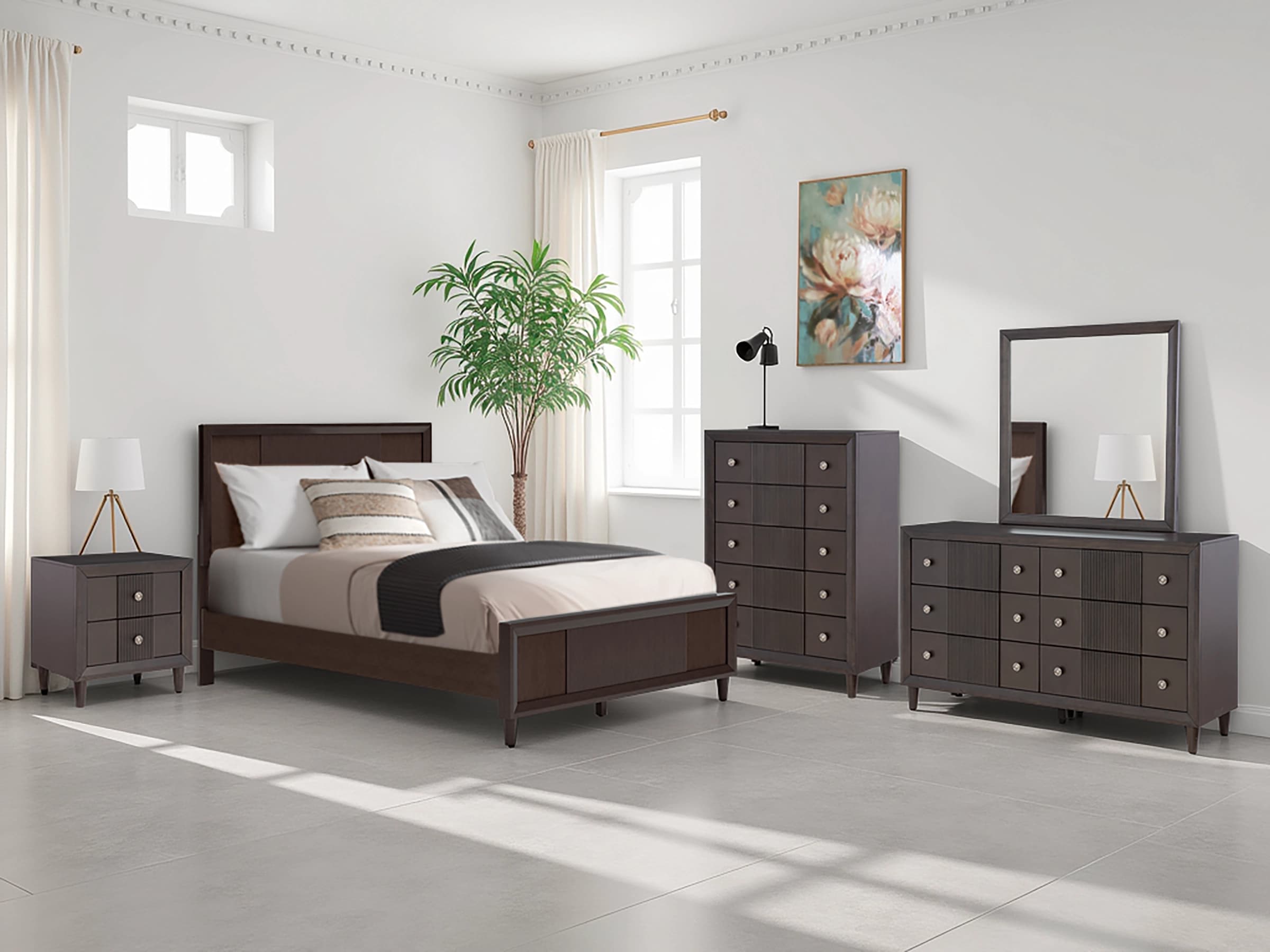 Styling tip: Invest in hotel-style bedding — crisp sheets, a linen duvet, and oversized pillows. Even a $299 frame will look luxurious when dressed properly.